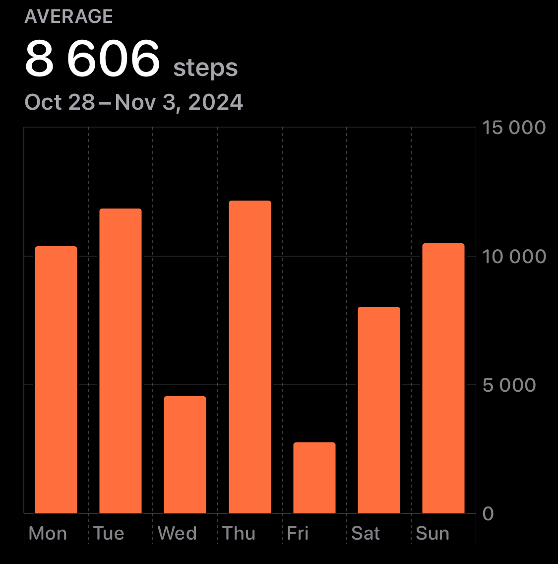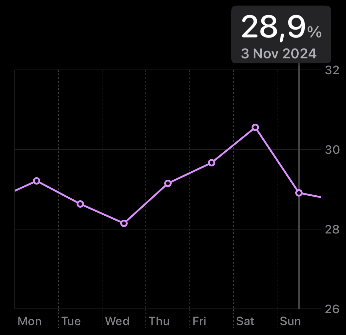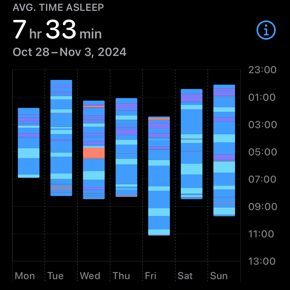 - Le sommeil, très important également, cette semaine je suis sur une moyenne de 7h24 de sommeil sur la semaine, c'est pas mal, mais il faut essayer de viser les 8h, et surtout, ma fille recommence l'école, se lève plus tot; je vais devoir l'y déposer, et me lever plus tôt, donc impératif, pour tenir l'engagement, dodo plus tôt.